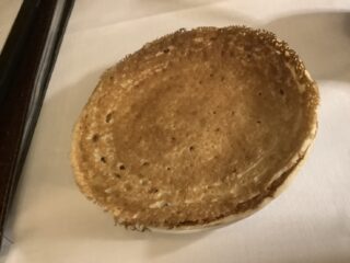 このクレープみたいな薄いパンケーキで包んで食べるの!